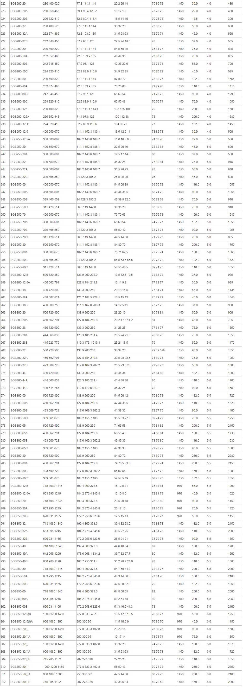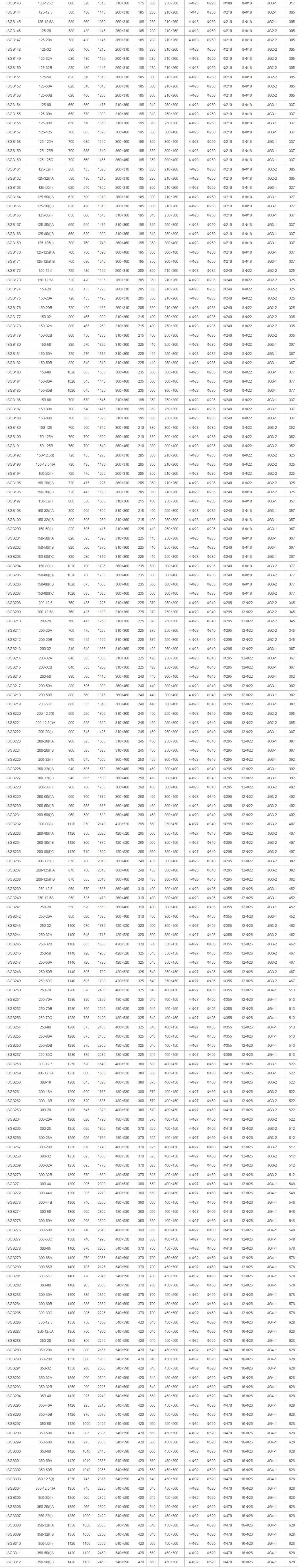 1、ISGB型便拆式管道泵系統高工作壓力為1.6MPa,即泵吸入口壓力+泵揚程≤1.6MPa(泵揚程工作壓力大于1.6MPa時應在訂貨另行提出,以便在制造時泵的過流部件和聯接部件采用鑄鋼)。
